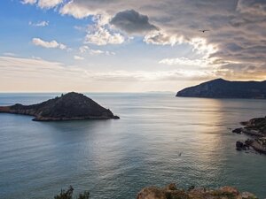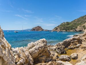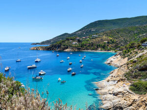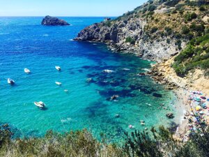 Uno spazio di terra fra isola e terra ferma situata di fronte all'isola del Giglio e L'isola di Giannutri dalle acque Pure Cristalline e Blue Cobalto